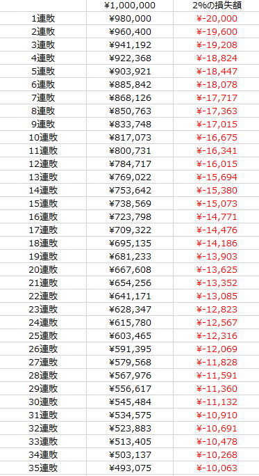 100万の原資であるのなら、許容限界損失額は2万まで。