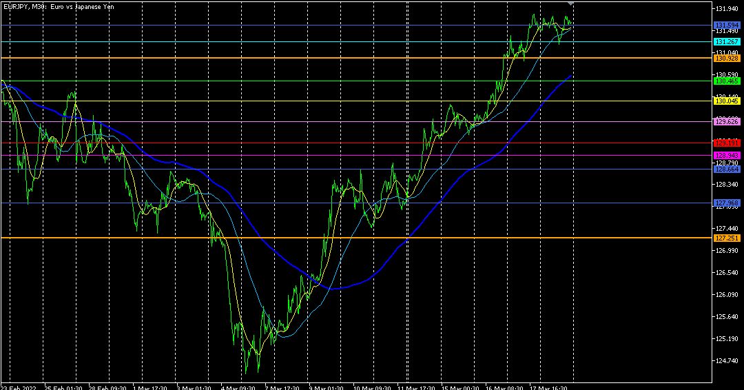 全体の流れを見るため、30分足チャートで直近約3週間分を描いています。