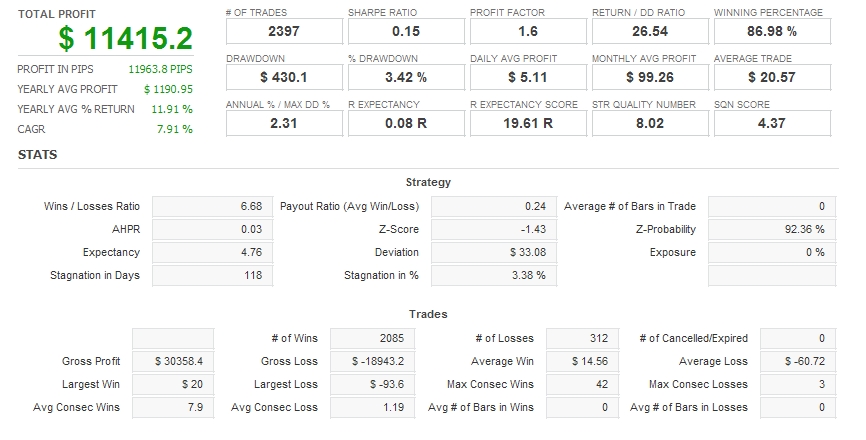 年間平均リターンは1190ドル=1000pipsオーバー!