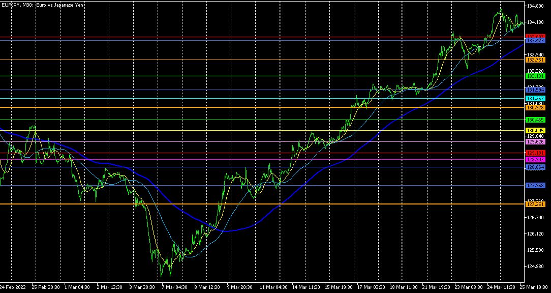 3月15日から上昇トレンドが継続しています。2週間で約730PIPSも上げています。さすがに、3月25日になってから、やや上値を抑えられてきているようです。