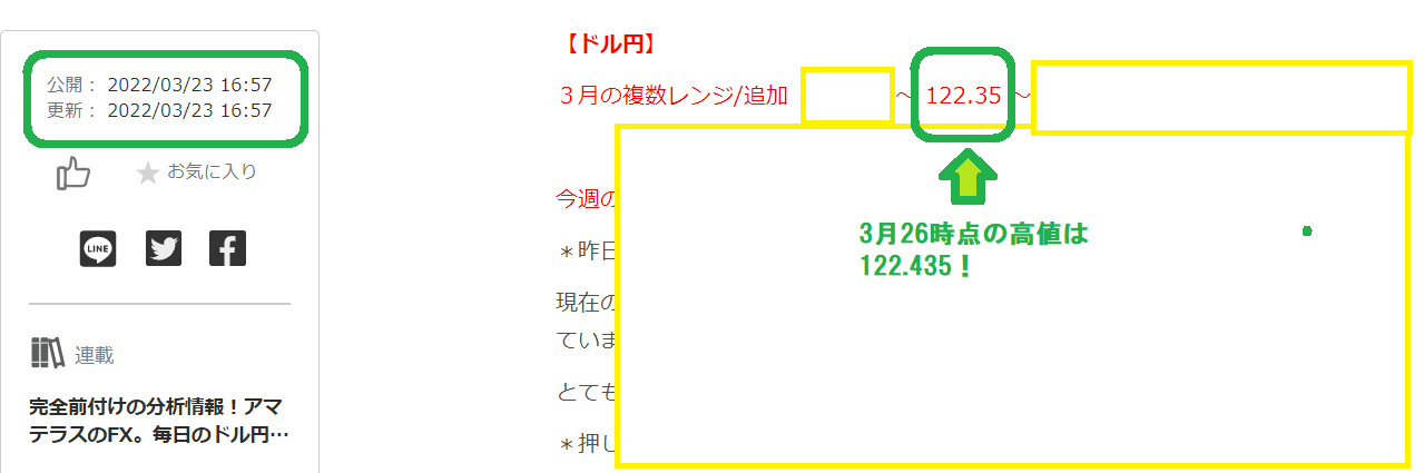 3月23日(水)の記事ですが、その時点では121.40まで上げていました。