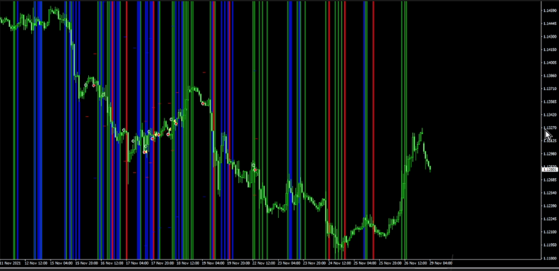一定の時間ごとに赤線・青線・緑線が並んでいます 雇用統計や小売売上高、景況指数、消費者物価指数、FOMC ECBなど経済指標を取り込んでトレードをスルーしたり 果敢に攻めたりの設定が可能。
