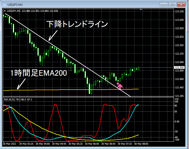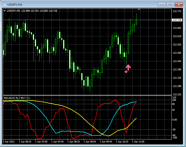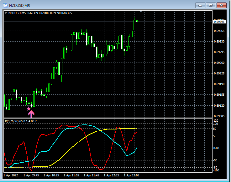 →mBDSR(RCI2本フィルター)の押し目買いサイン点灯からの上昇