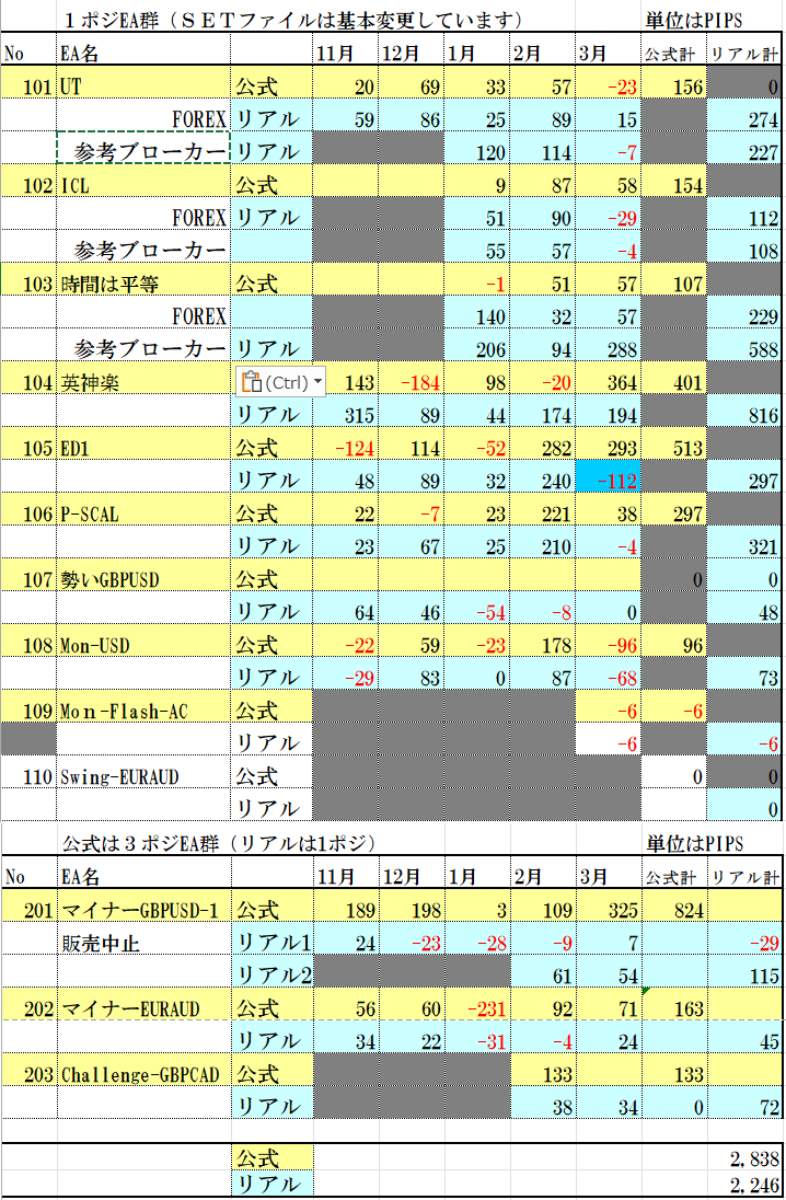 (状況)3月は公式がいいですが、平均するとパラ変更のがいい状況です。 トレンド出た時は強いEAですが少々使いにくい感じもあります。
