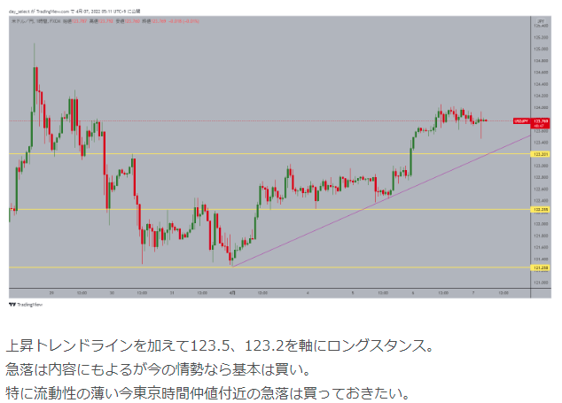 東京時間仲値にかけて投げ売りが123.5円ラインに向けて出ている。