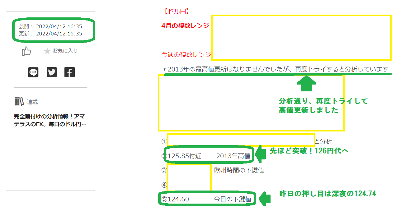 *高値更新後は次の値、昨日までの分析値①で止まるか?が今週の鍵です。