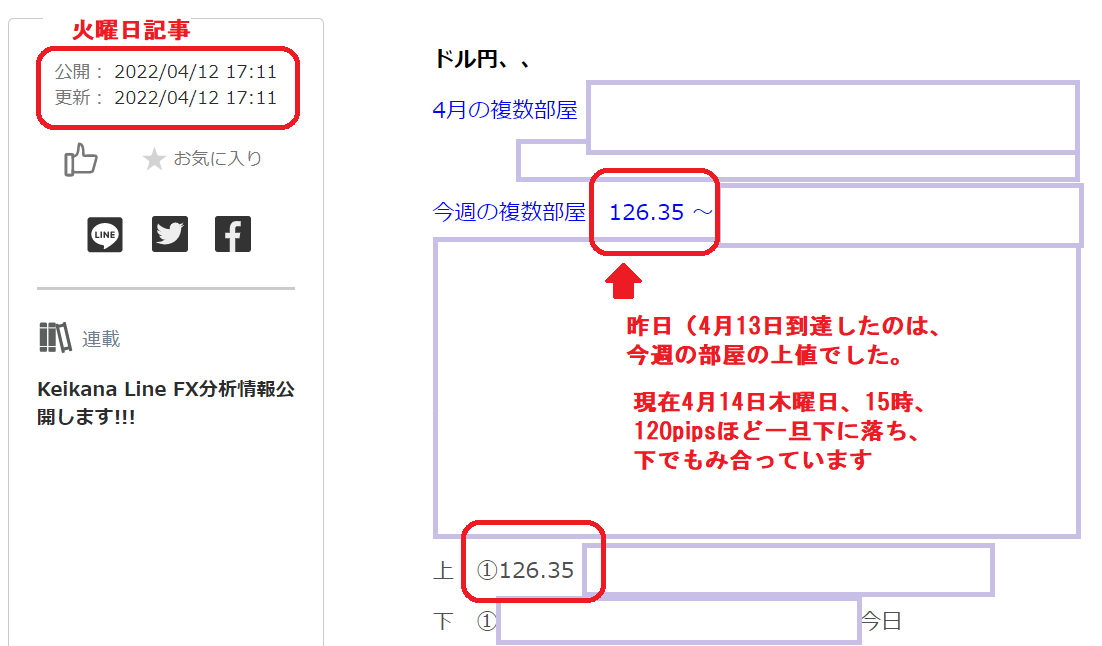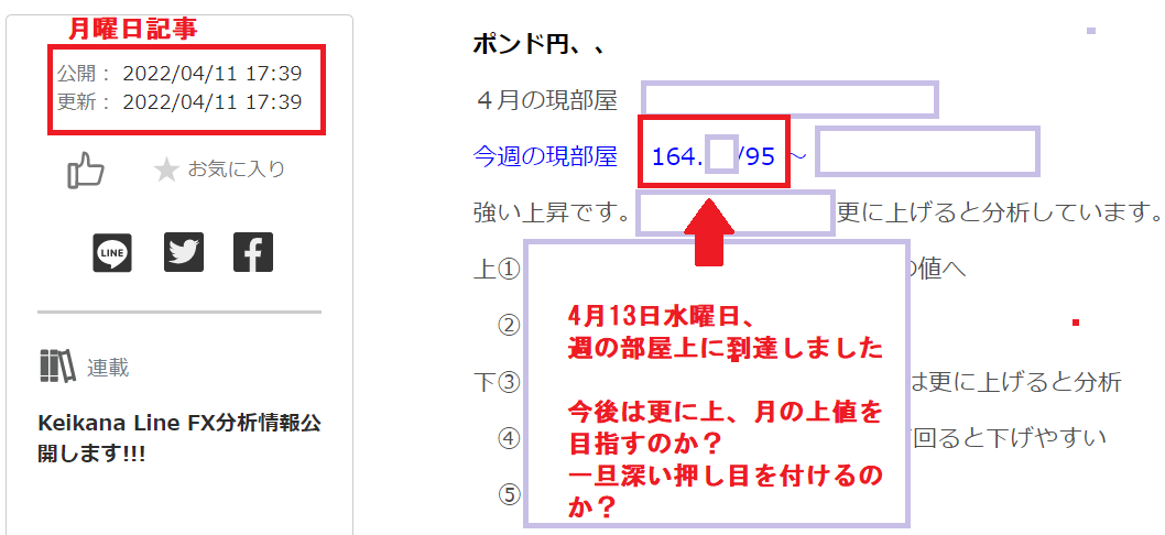 2022.4.14 週レンジ上到達!高値的中の昨日記事公開