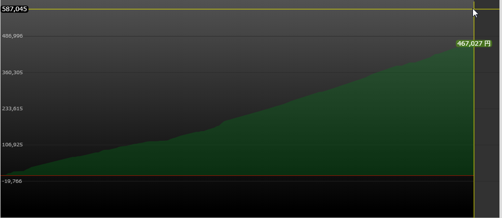 現在の実現損益は+467,027円で、+6,161円の増益となっています。