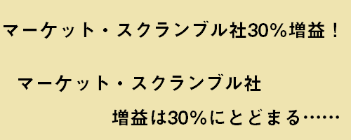 例えばニュースの見出しが、「〇〇社 30%増益」か「30%増益にとどまる」かで、ずいぶんと印象が違いますよね。