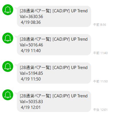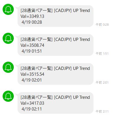 少し前の時間帯からCADJPYのLINE通知が届いていることも確認できます。