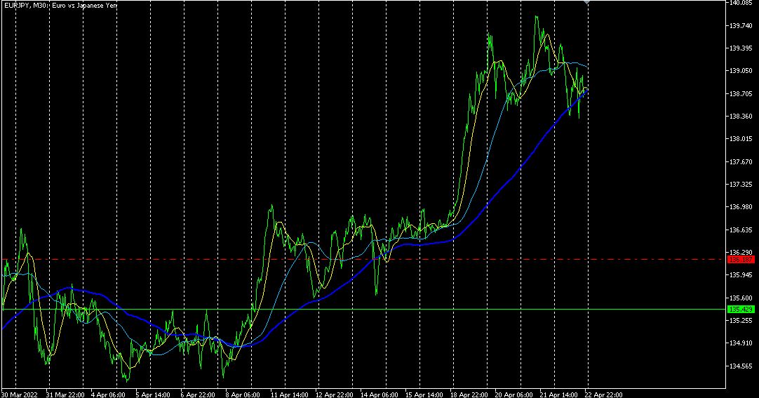 全体の流れを見るため、30分足チャートで直近約3週間分を描いています。