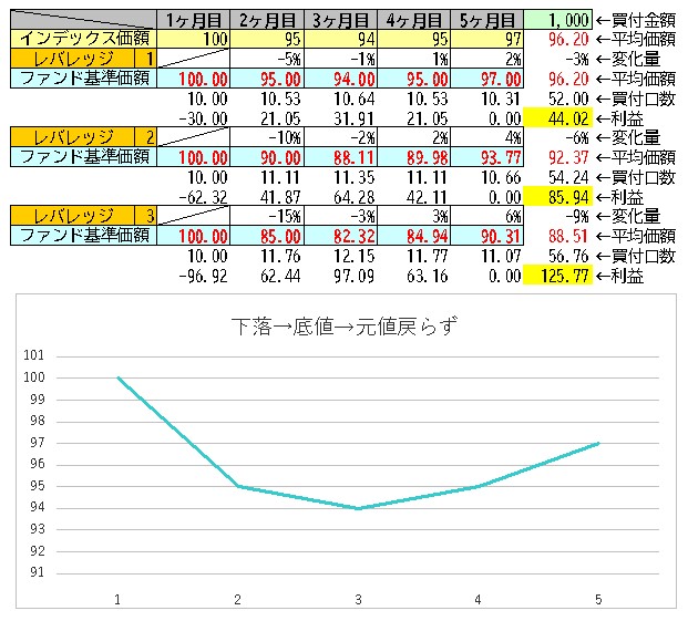 ・平均購入価格:レバ3倍<レバ2倍<レバなし