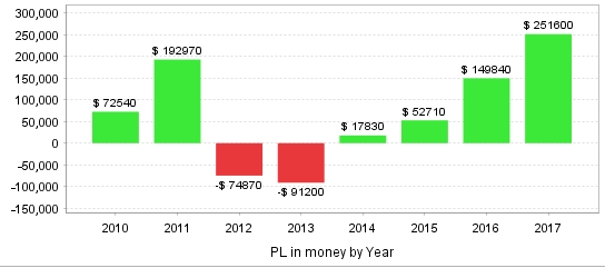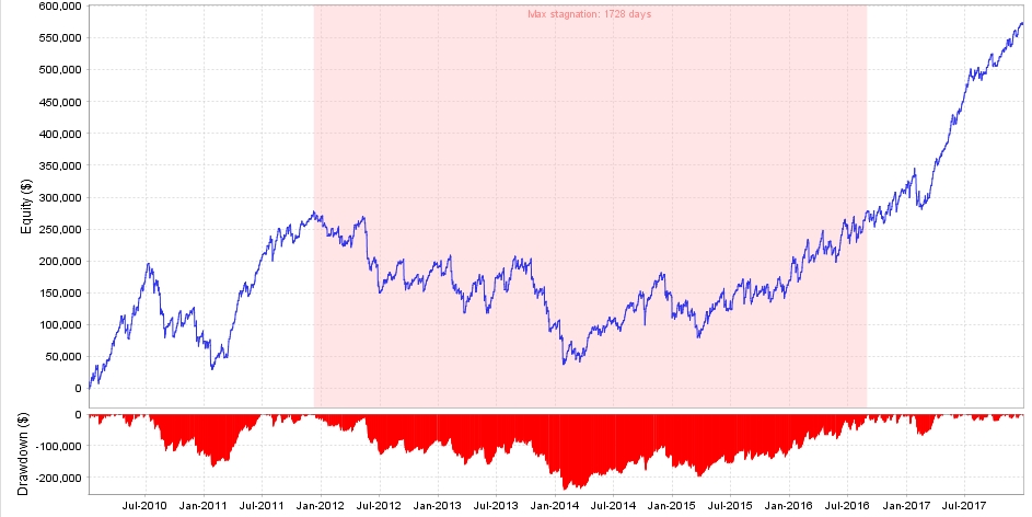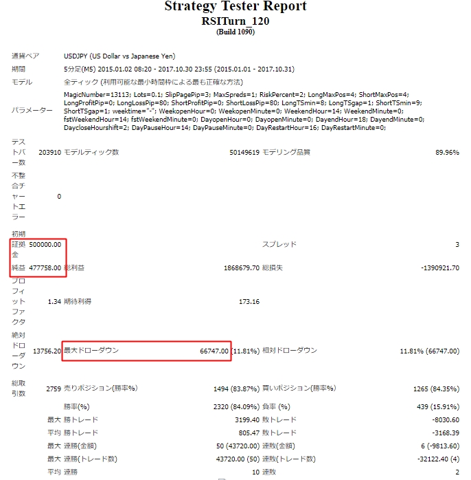 2010~2017年、スプレッド0.5、0.1ロット固定にてバックテストしてみました