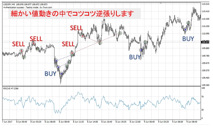 RSI利用した短期逆張りでコツコツ利益をかすめ取ります。