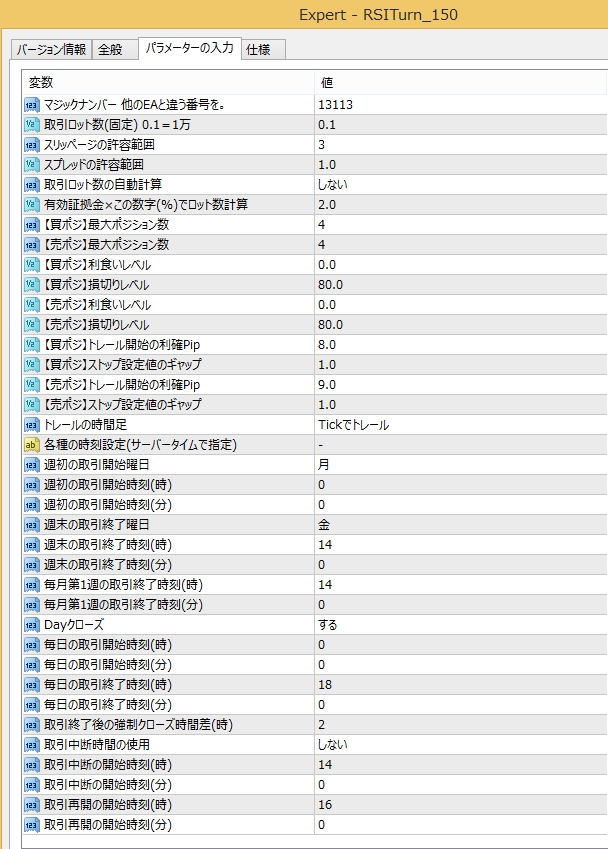 最大ポジション数:5(売り4、買い4、同時保有5ポジ)