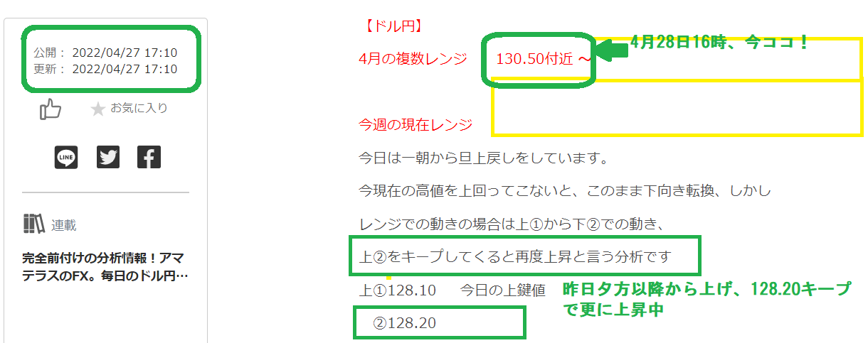4月28日 再度高値更新中のドル円、ポンド円分析(月レンジ記事大公開!)