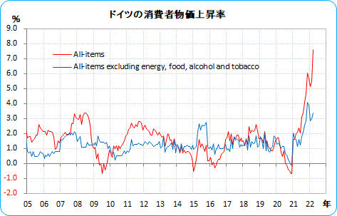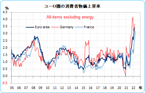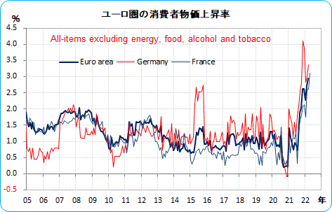 総合物価が上昇しているのはわかる。ロシアからのエネルギーまで閉ざされつつあり、光熱費は高騰している。では、エネルギーと食品を除くとどうなのだろう?