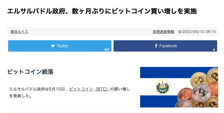 エルサルバドルのNayib Bukele大統領は10日にツイッターで買い増しの発表を行い、「500BTCのビットコインを取得平均価格30,744で押し目買い(ディップ買い)した」と説明している。