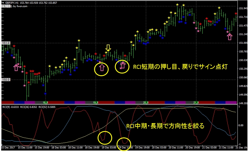 3本のRCIで折し目、戻りがわかる!インジケーター「BOTSOR 」