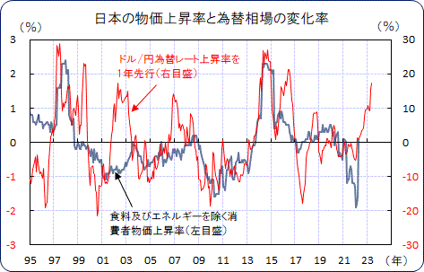 ところで、グラフを見てほしい、円安が物価上昇を引き起こすとすればこれからだ。しかし、過去を見ると、2014年の消費税増税の時を除いて円安でも物価上昇(前年比で0%以上)が起きていない。今回はどうなるか?