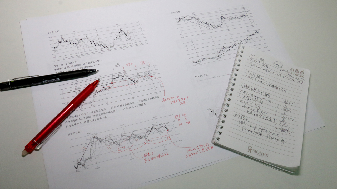 勉強会の参加者の中にはチャートを紙に書き起こす人も数人見受けられ、はやり紙にチャートを起こすとその理解度は格段にアップするのだという。