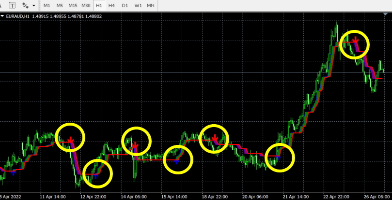 売りのタイミングになりましたら、下矢印が表示されます。 買いのタイミングになりましたら、上矢印が表示されます。 売りと買いの矢印が表示されましたら、ポップアップアラート、メール通知、スマホ通知でお知らせしてくれます。