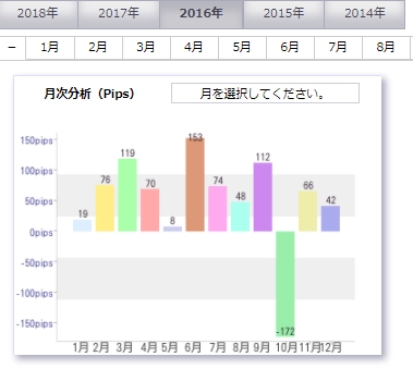 大きなドローダウンがあるも、2016年は計+617pips獲得と大健闘。
