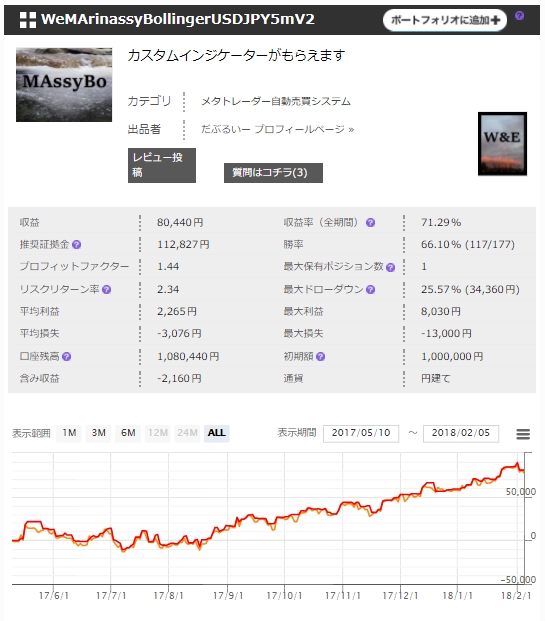 推奨証拠金に対しての収益率は+71%と、年利100%も夢ではない好成績のEAです!