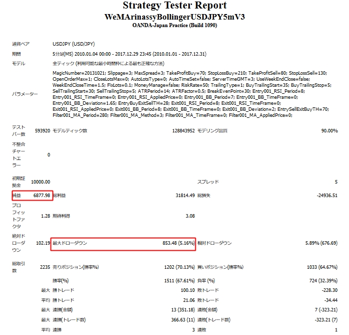 特記事項:内部ロジックによる決済あり(テクニカル・ブレークイーブン・トレーリング(ATR含む))、複利機能付き