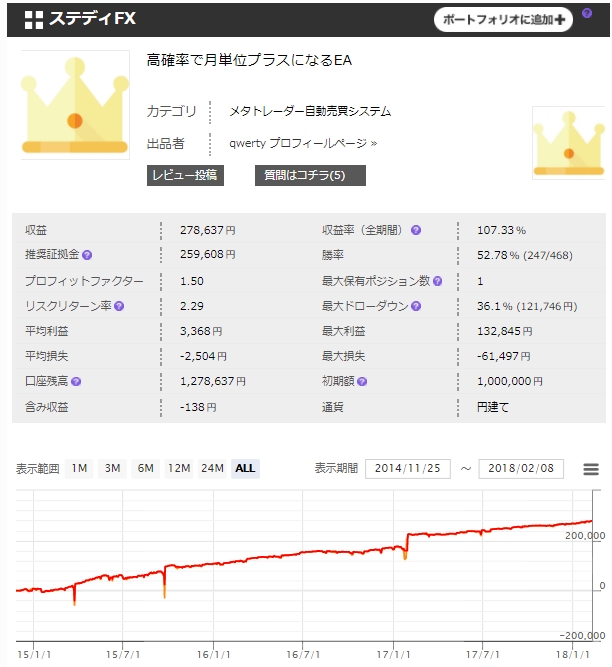 ドカーンとは稼げないかもしれないですが、コツコツ増えていくタイプのEAですよ!