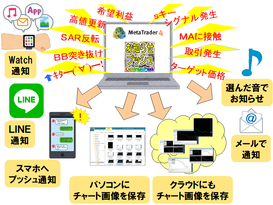 通信環境やMT4の動作タイミングにより、必ずしも正確に通知することをお約束するものではありません。 このツールを利用ご利用いただく際には、ツールの性能をご理解の上、自己責任でお願い致します。■ 困ったときは