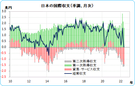 前回、ユーロ圏の国際収支を見たが、日本も同様だ。季節調整値では、赤字すれすれまで来ている。為替需給で、経常収支でネットの円買いは消え、資本収支ではキャリートレードなど円売りと、円は売られ一方だ。ただし、資本収支では円売りポジションの利食いによる円買いがときたまでるだろう。