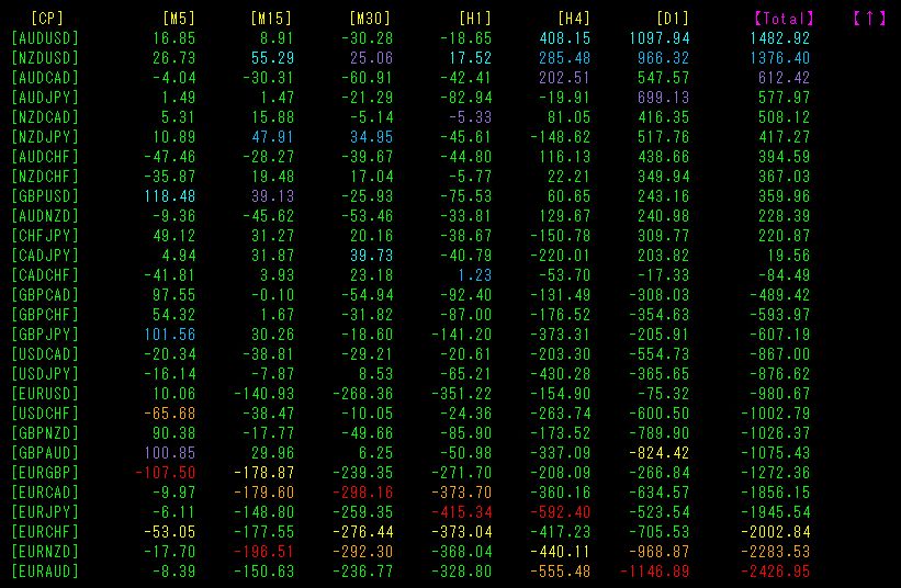 数字の色がバラバラで纏まっておらず、トレンドが発生している状態ではありません。