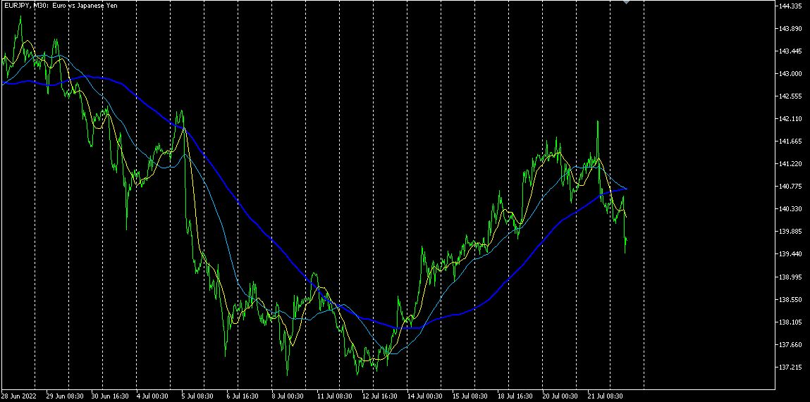 全体の流れを見るため、30分足チャートで直近約3週間分を描いています。