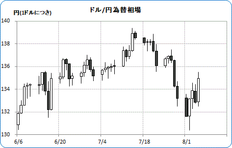 8月2日、有事の円買いが起きた。これで円キャリートレードの巻き戻しが一気に進んだと判断して、ドルを@130.70で少し買った。1円刻み程度でナンピン予定だったので少しだ。結局、その1回の買いで終わった。