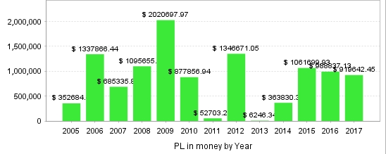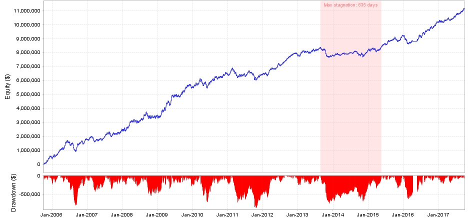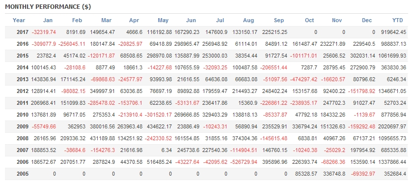 ドローダウンは大き目だが、稼げる年はよく稼ぐ!(そして年間のマイナスもナシ!)