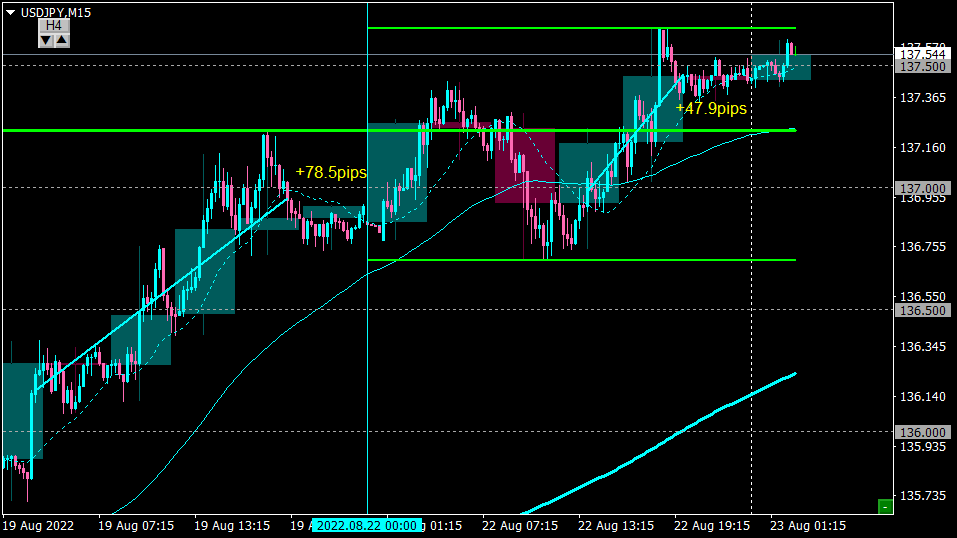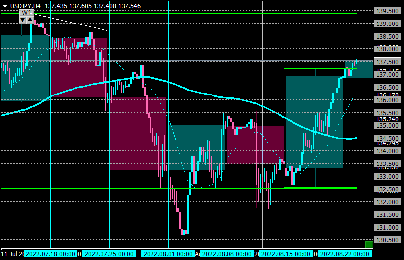前回高値139.0まではまだ値幅があるが、H4レベルのネックラインは137.50。