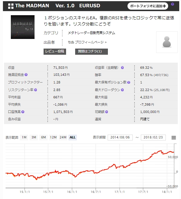 最大ドローダウン30%台に対しての年間期待利益率は+14%となっています。