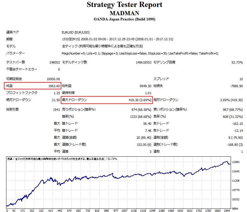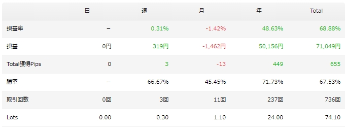 獲得pipsが少ないかなと思うかもしれませんが、最大ドローダウンが2.5万円と低いので、