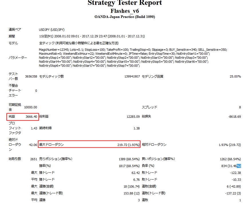 上記ロット数での年間平均利益はUSDJPY版で+3666ドル