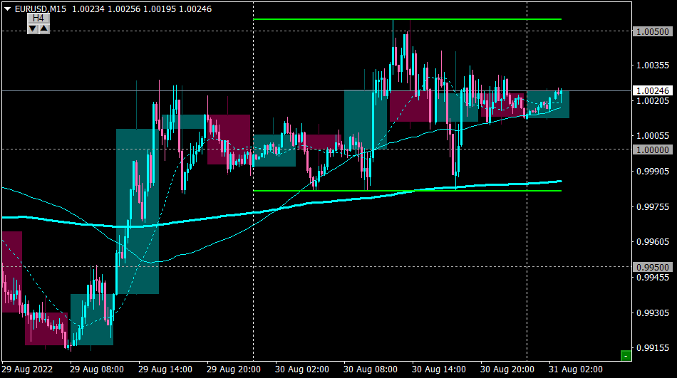 トレードレンジとしては、上は昨日の高値1.0050で、下は安値の0.998に設定。