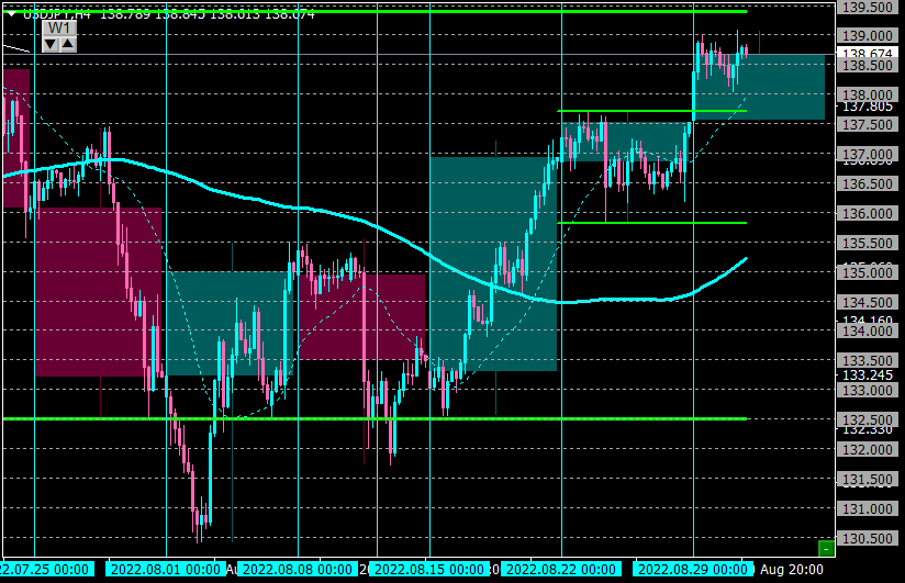 昨日は天井圏でWトップを作り始めたのでM15レベルのWトップネックライン割れでショート。