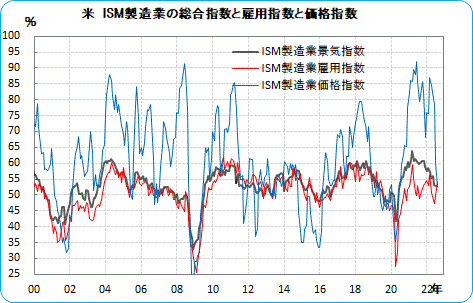 52.8は実質GDP成長率1.5%程度に相当する。若干弱めだが、経済は成長しており、企業収益も拡大が続いているようだ。リセッション(景気後退)は差し迫っていない。