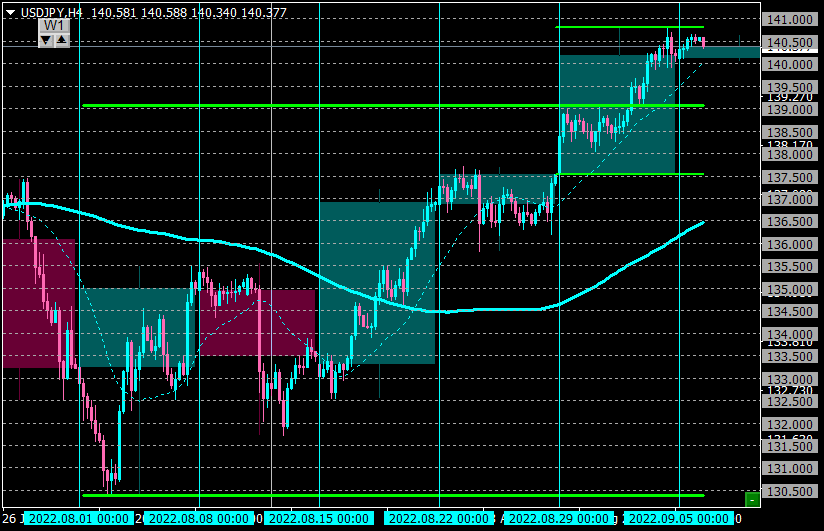 先週高値140.80で天井を作るか、それともさらに上を目指すかを見極める状況。