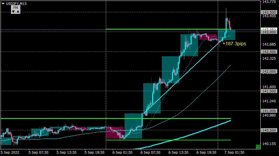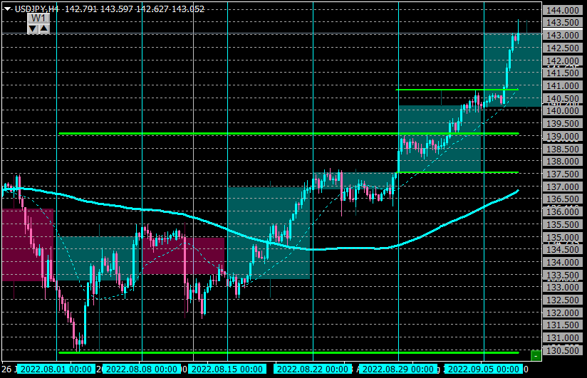 昨日は月足高値140.80をH4の足がブレイク確定でエントリー。