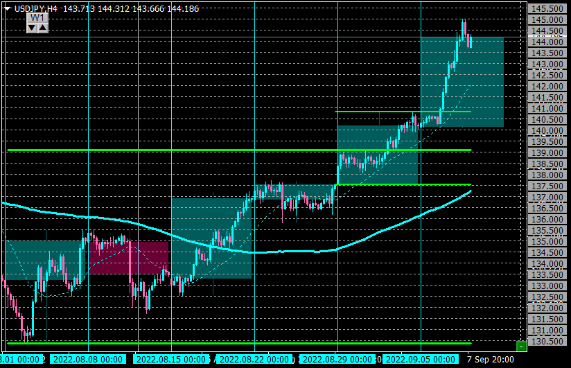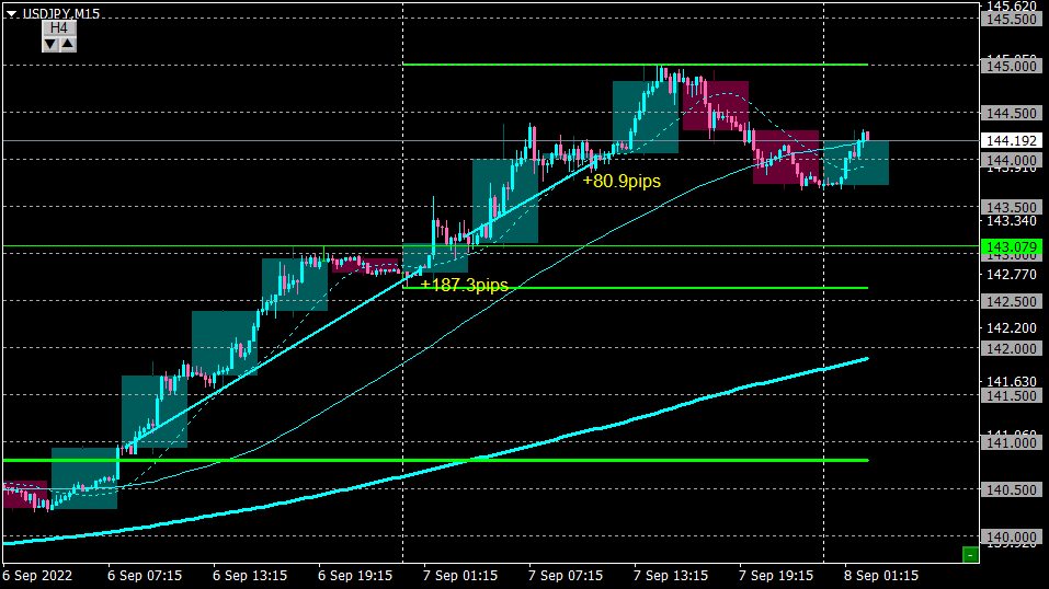 144.0で揉み合いだしたのでイグジットし+80pipsほどの利益。