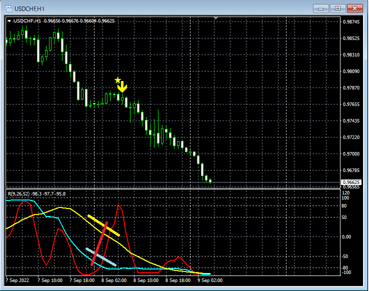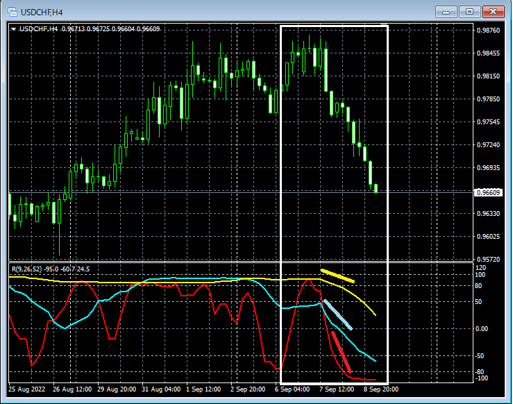 『RCI3本ライン+mBDSR』~上位足が指し示す方向を狙う(ドルスイス20220908)~