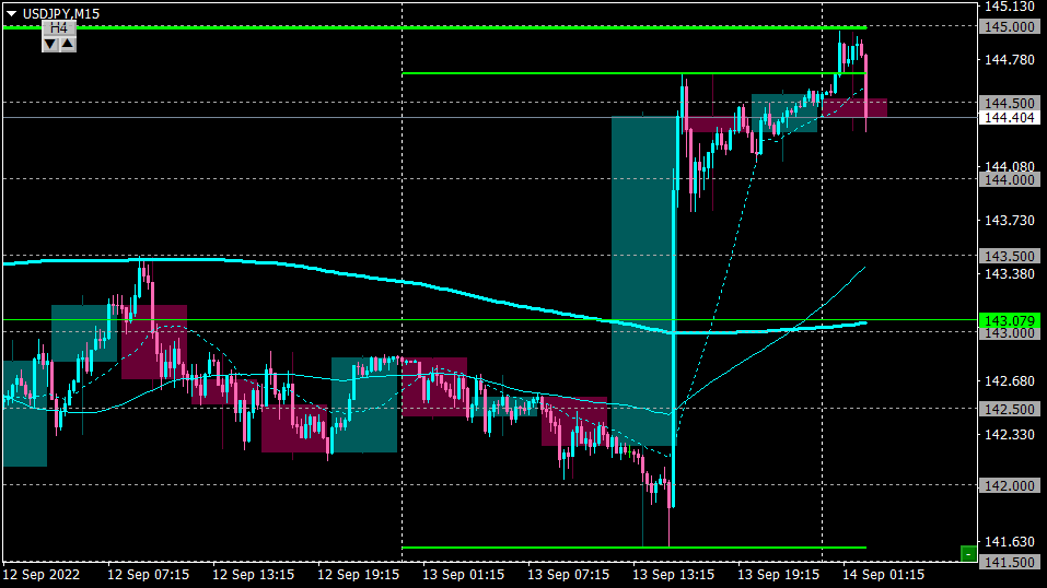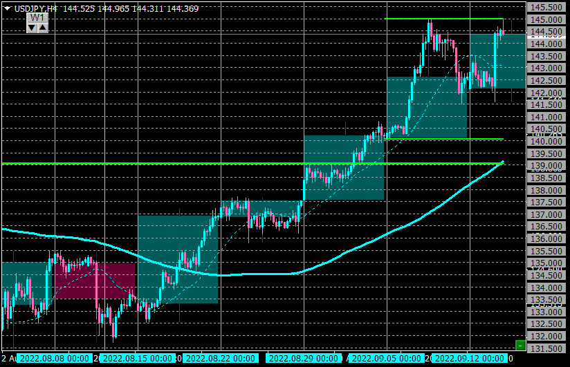 昨日は141.50から買われて、先週高値145.0で大きなWトップを作りつつある。