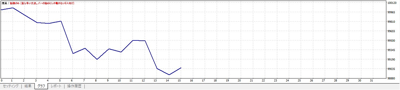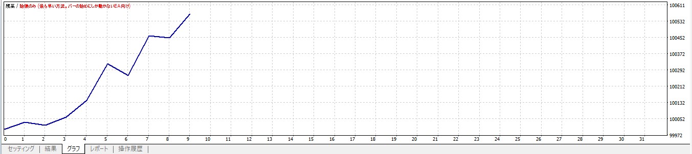 当システムでは、全て足の始値で売買しているため、MT4のエキスパートアドバイザのセッティングのモデルを「足の始値のみ」に設定しても、「全ティック」に設定しても同じ結果となります。