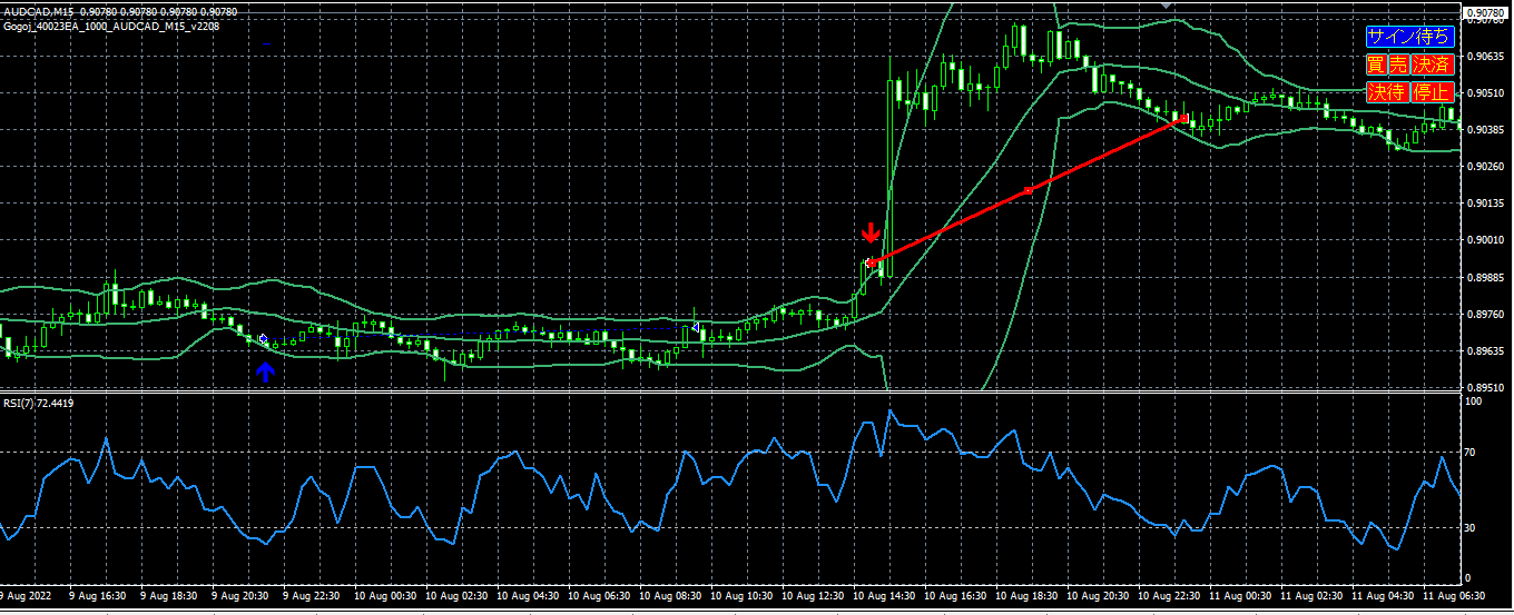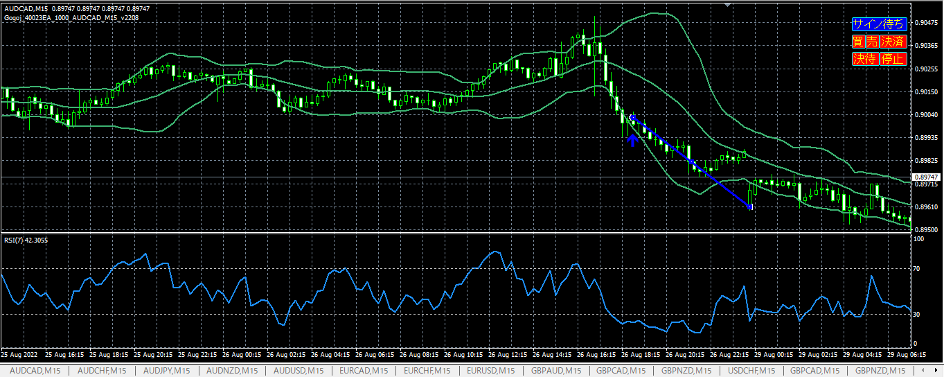 豪ドルカナダAUDCAD15分足の2022年8月のフォワードシグナルと改善
